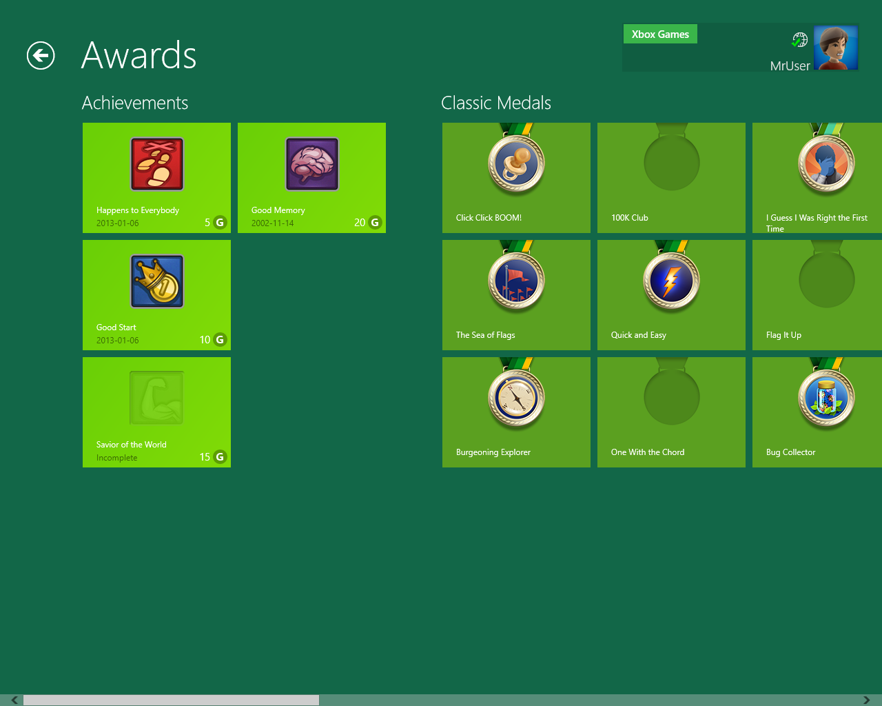 I don’t intend to oversell Minesweeper. It’s effectively the same Minesweeper as always with some achievements. What’s more interesting is the idea of Xbox Games for Windows. I look forward to seeing more games come to Windows featuring leaderboards and achievements!